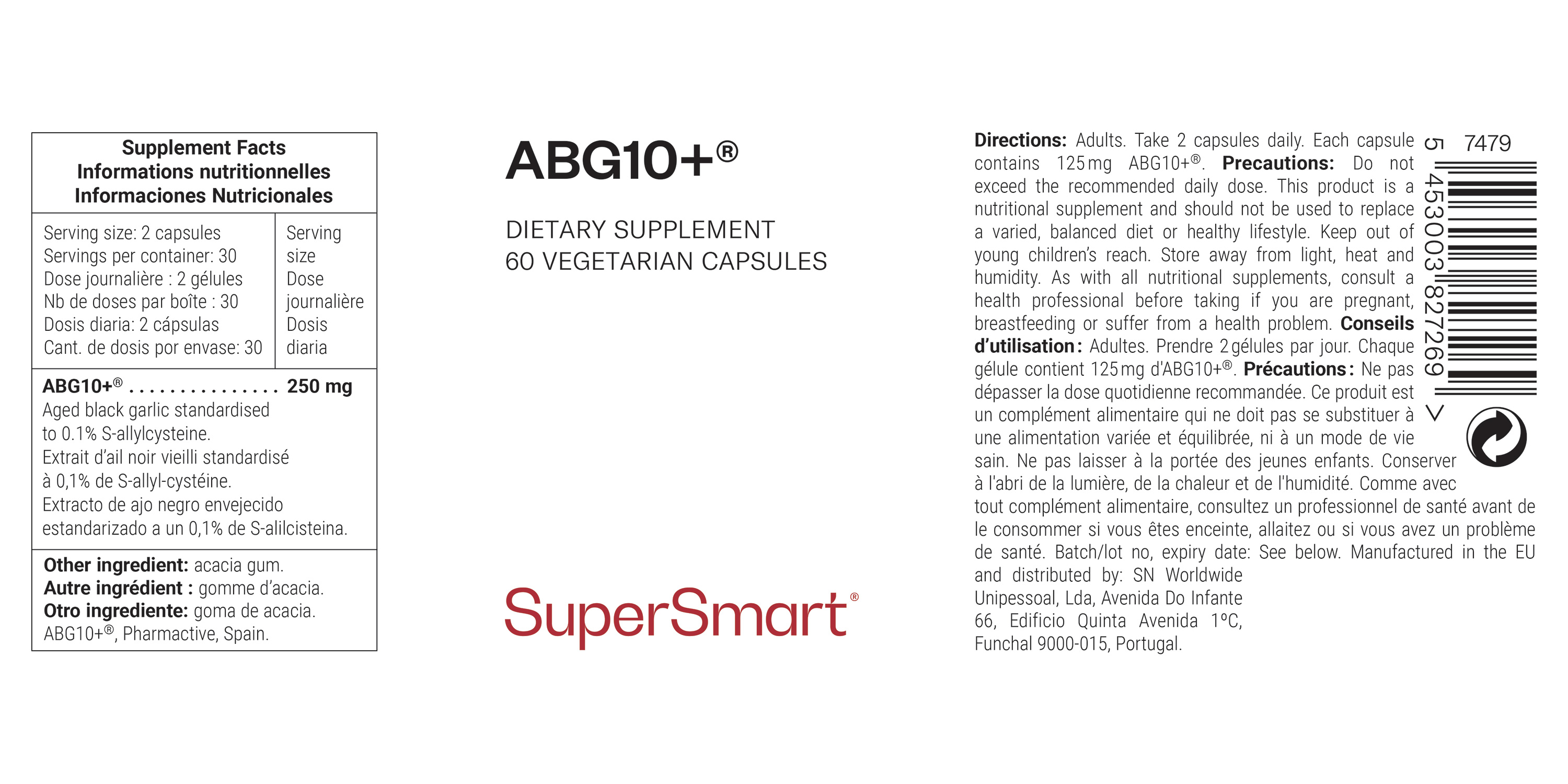 • de una concentración de más del 0,1 % de S-alil-cisteína, es decir, el contenido más alto disponible en el mercado. Esta particularidad distingue a Organic ABG10+® de los complementos de ajo envejecido más clásicos;